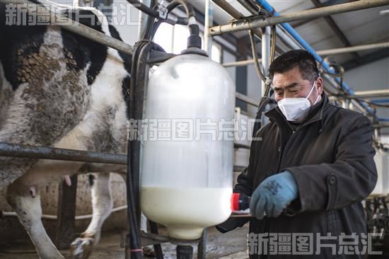 2022年12月22日,养殖户在吉木萨尔县北庭镇余家宫村永泉养殖合作社查看奶牛产奶量。