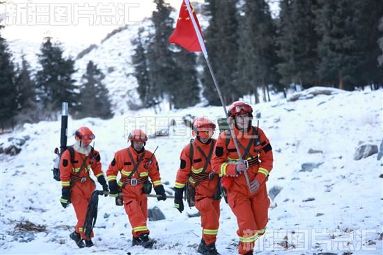 2022年12月20日,消防人员在库车市阿格乡北山森林巡查。