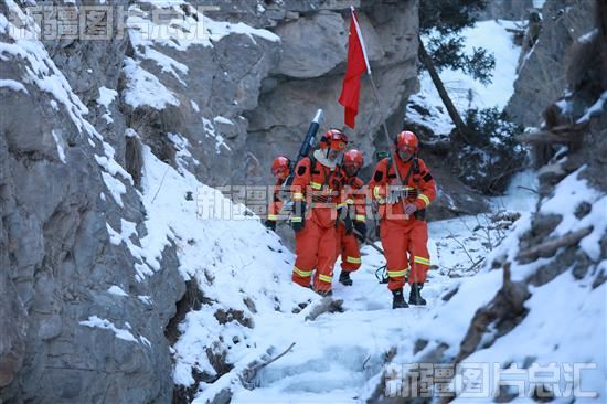 2022年12月20日,消防人员在库车市阿格乡北山森林巡查。