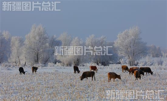 关键字:阿勒泰地区 哈巴河县 库勒拜镇 降雪 银装素裹 雾凇 雾凇奇观 自然景观 油画 风景线 牛 农田 觅食