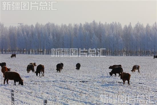 关键字:阿勒泰地区 哈巴河县 库勒拜镇 降雪 银装素裹 雾凇 雾凇奇观 自然景观 油画 风景线 牛 农田 觅食