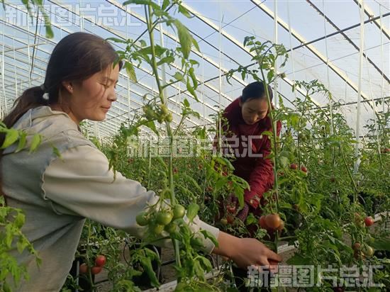 2022年12月26日,员工在阿克苏市喀拉塔勒镇萨提村蔬菜温室种植基地采摘西红柿。