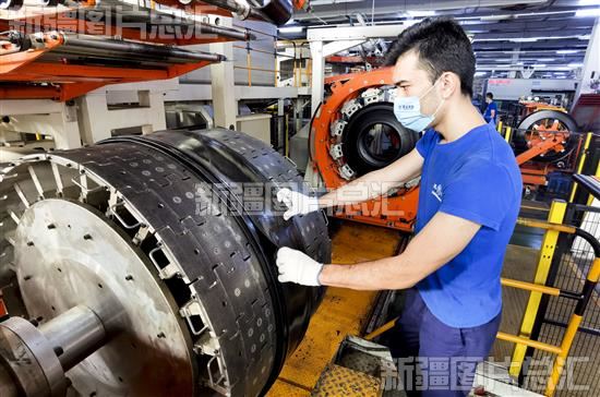 2022年12月26日,双钱集团(新疆)昆仑轮胎有限公司员工在智能生产车间作业。