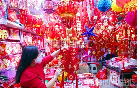 2022年12月20日,市民在乌鲁木齐市华凌市场选购新年饰品。