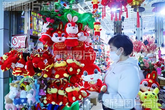 2022年12月20日,市民在乌鲁木齐市华凌市场选购新年饰品。