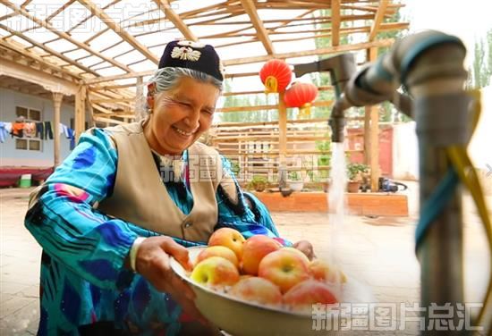 城乡饮水安全工程让各族人民喝上了“放心水”。图为2020年7月,新疆维吾尔自治区伽师县江巴孜乡依排克其村村民用自来水清洗水果。