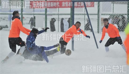 当日,新疆维吾尔自治区第一届冬季运动会雪地足球擂台赛第二轮甲组、乙组比赛,在阿勒泰市全季体育公园激情开赛。持续降雪使足球场地积雪厚度增加,运动员在比赛中顽强拼搏,上演了一场场高水平的雪地足球赛。