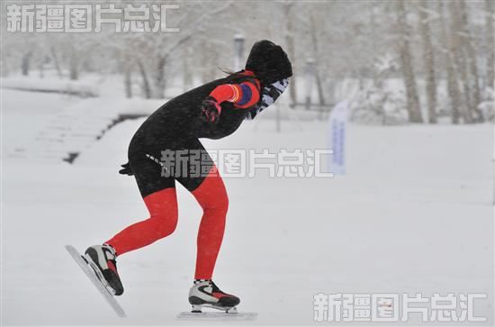 速度滑冰选手雪中展风采