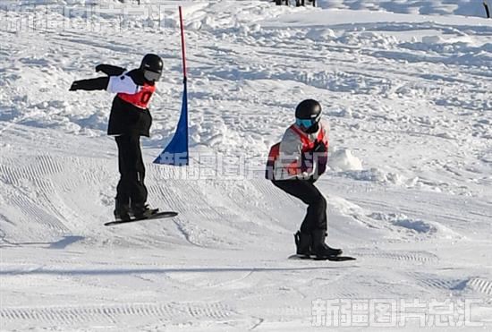 2023年?1月1日,自治区第一届冬季运动会单板滑雪障碍追逐混合团体赛在阿勒泰市将军山国际滑雪度假区开赛。在单板滑雪障碍追逐混合团体赛中,每队由一名男性运动员和一名女性运动员组成,参赛队伍一同出发,在滑行中运动员必须穿越旗门,通过坡面并以回转、跳跃等技术动作跨越障碍,在赛道上竞相追逐,每队两名运动员比赛成绩总和为总成绩。作为全疆最高水平的冬季项目综合性运动会,本届冬运会有一批优秀的选手崭露头角。