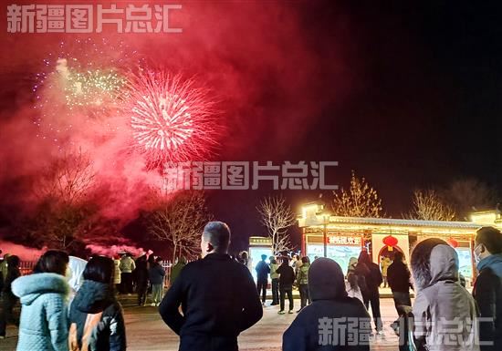 2022年12月31日,裕民县锦裕生态公园举行跨年烟花表演,各族群众一起观看璀璨烟花,喜迎新年的到来。