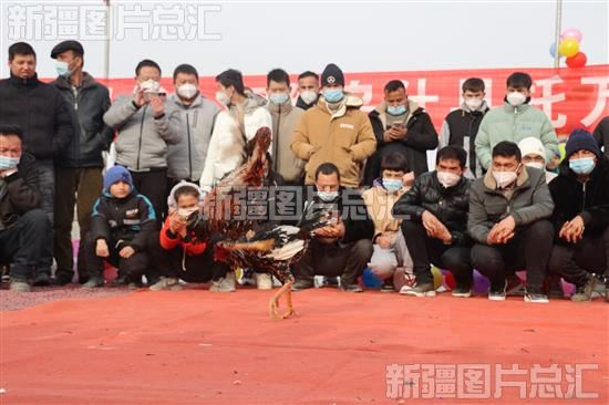 2022年12月30日,在乌什县依麻木镇托万克麦盖提村滑冰场地,游客在观看斗鸡比赛。