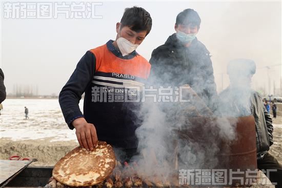 2022年12月30日,乌什县依麻木镇托万克麦盖提村冰雪场上的特色美食展吸引了众多游客品尝。