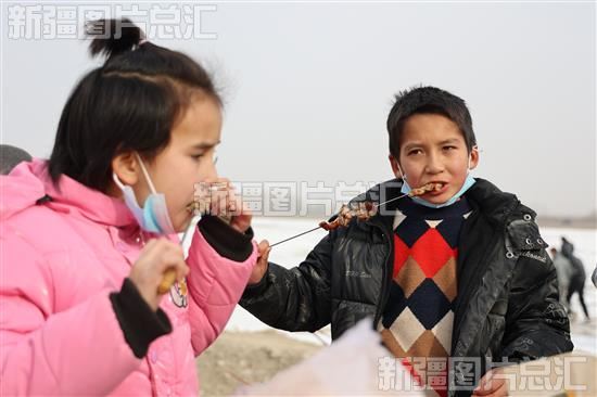 2022年12月30日,乌什县依麻木镇托万克麦盖提村冰雪场上的特色美食展吸引了众多游客品尝。