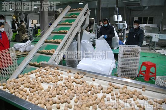 关键字:阿克苏地区 温宿县 恰格拉克乡 林果业 果业 核桃 工作人员 加工 生产线 包装 搬运