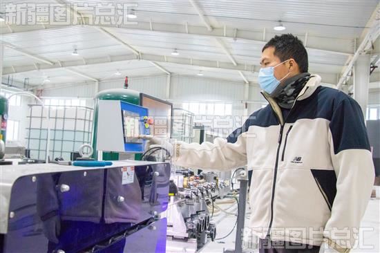 2023年1月2日,技术员在精河县兴晟塑业有限公司生产车间检修滴灌带生产设备。