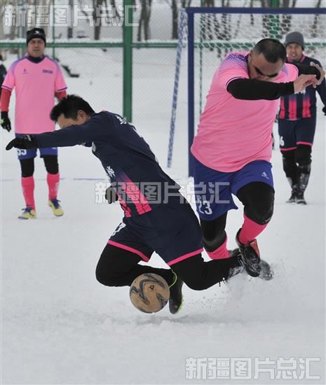 当日,自治区第一届冬季运动会雪地足球擂台赛甲组、乙组八强淘汰比赛在阿勒泰市全季体育公园举行。参赛运动员在比赛中顽强拼搏,展开了激烈的雪地足球大战。