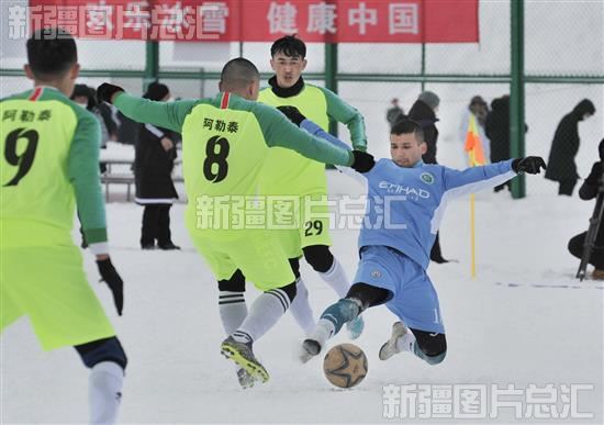 当日,自治区第一届冬季运动会雪地足球擂台赛甲组、乙组八强淘汰比赛在阿勒泰市全季体育公园举行。参赛运动员在比赛中顽强拼搏,展开了激烈的雪地足球大战。