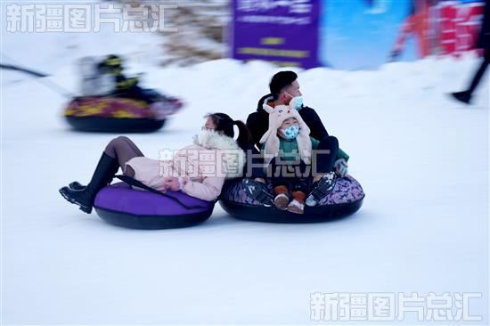 2023年1月2日,市民在阿拉尔市滑雪场体验滑雪圈,享受冰雪运动带来的快乐。