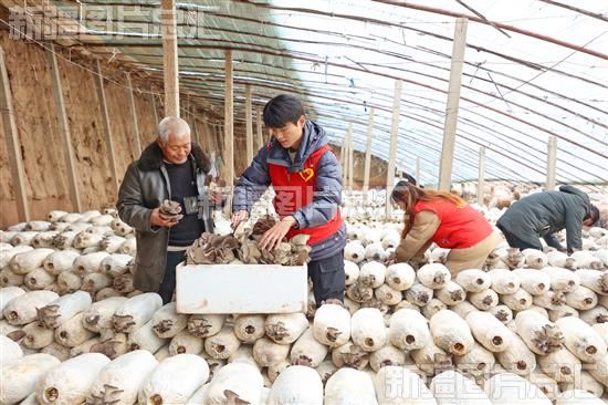 2023年1月4日,库车市乌恰镇党员干部帮助农户采摘平菇。