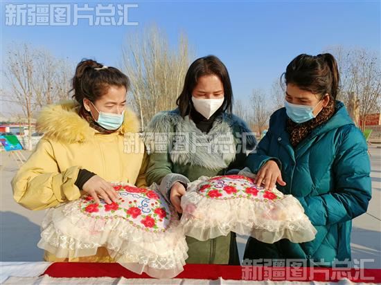 2023年1月4日,村民在欣赏手工刺绣作品。