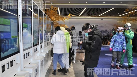 2023年1月5日,滑雪爱好者在阿勒泰市将军山滑雪场自助购票。