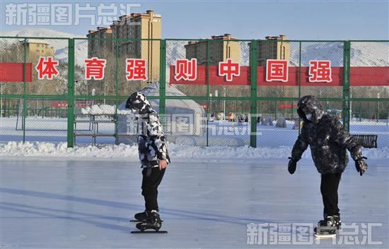 2023年1月5日,滑冰爱好者在阿勒泰市全季体育公园滑冰。