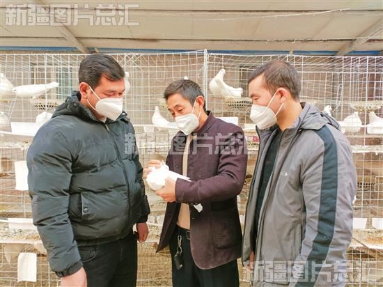 2023年1月3日,技术人员在温宿县恰格拉克乡吉格代村指导村民如何查看鸽子健康情况。