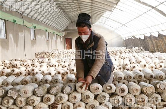 2023年1月3日,农户在阿瓦提县塔木托格拉克镇玉斯屯克阿热勒村蘑菇种植基地采收蘑菇。