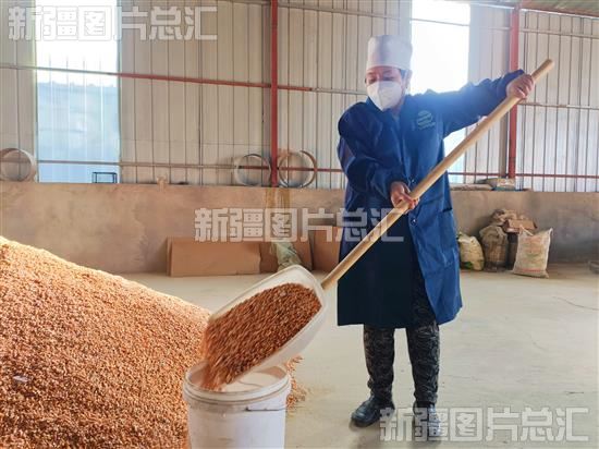 2023年1月5日,养殖户在鹌鹑养殖基地加工饲料。
