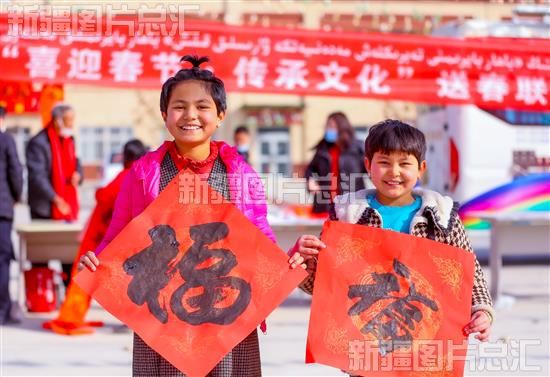 2023年1月8日,洛浦县多鲁乡的小朋友们领到了“福”字。