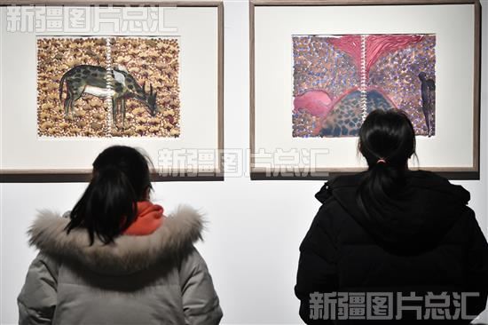 2023年1月10日,市民在新疆美术馆观看艺术作品。