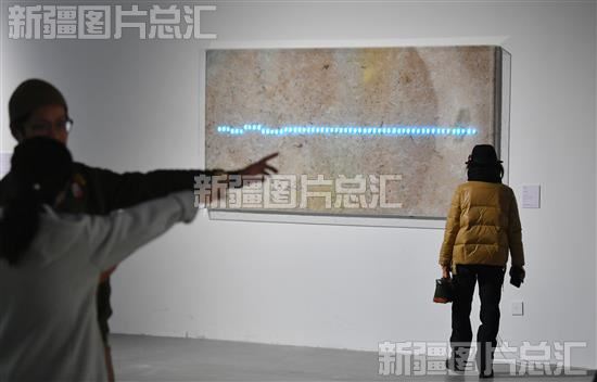 2023年1月10日,市民在新疆美术馆观赏装置艺术作品。