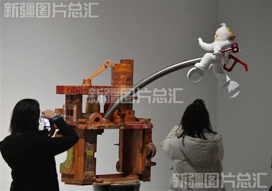 2023年1月10日,市民在新疆美术馆观赏雕塑艺术作品。