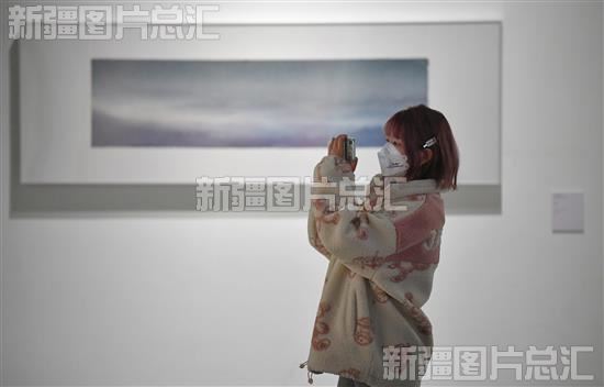 2023年1月10日,市民在新疆美术馆拍摄绘画艺术作品。