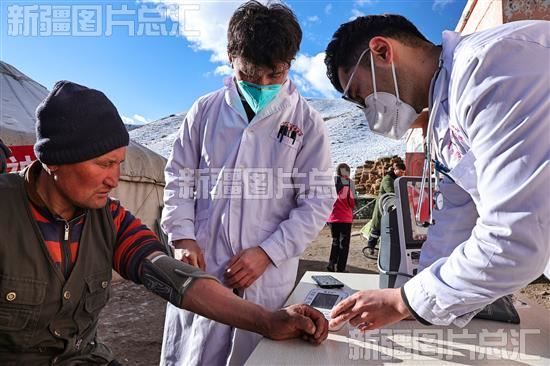 2023年1月8日,医务人员在为伊宁市英也尔镇牧民测量血压。