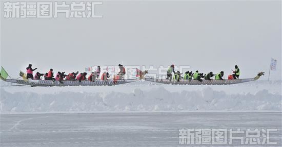 2023年1月9日,游客和当地群众在福海县乌伦古湖参加冰上龙舟赛。