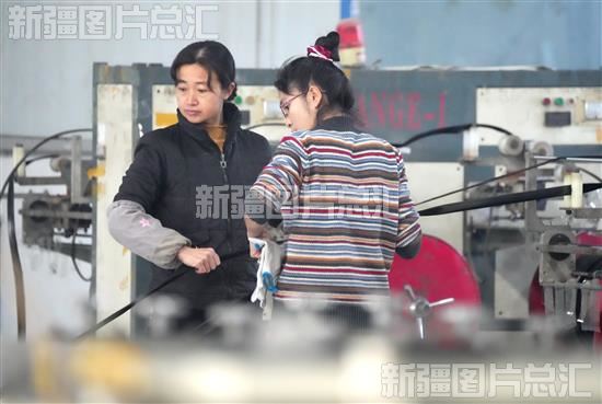 2023年1月29日,新疆生产建设兵团第一师阿拉尔沙海节水应用技术服务有限公司员工在生产滴灌带,保障当地春耕春播所需。