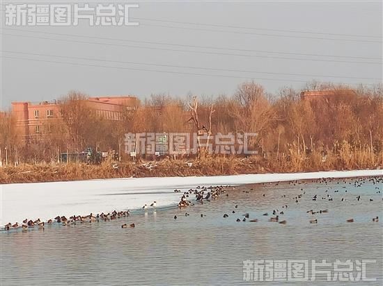 冬季的阿克苏国家湿地公园碧水连天,波光粼粼,各种水鸟在湖面上嬉戏觅食,一幅自然和谐的生态画卷。
