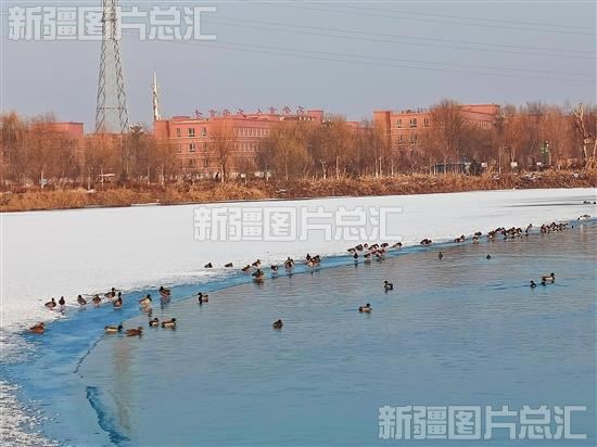 冬季的阿克苏国家湿地公园碧水连天,波光粼粼,各种水鸟在湖面上嬉戏觅食,一幅自然和谐的生态画卷。