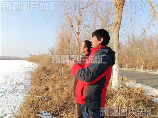 2023年2月1日,阿克苏国家湿地公园工作人员操作无人机巡查湿地。