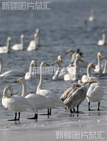 2023年2月1日,天鹅在孔雀河上嬉戏。