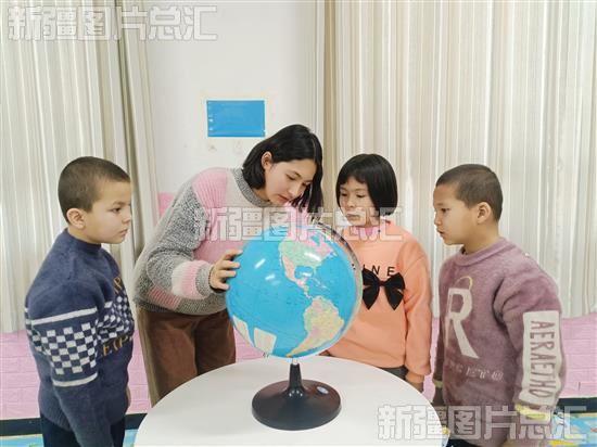2023年1月31日,返乡大学生在温宿县古勒阿瓦提乡米勒克艾日克村给孩子们讲解保护地球的知识。