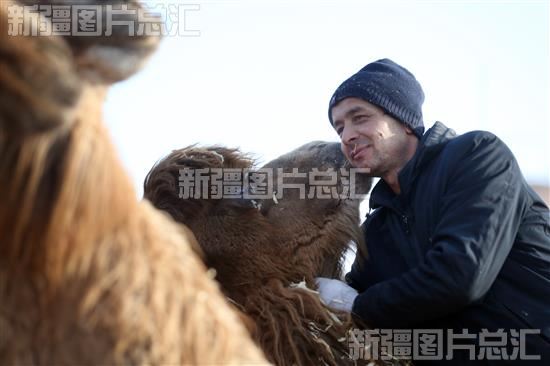 2023年1月31日,养殖户在照料骆驼。
