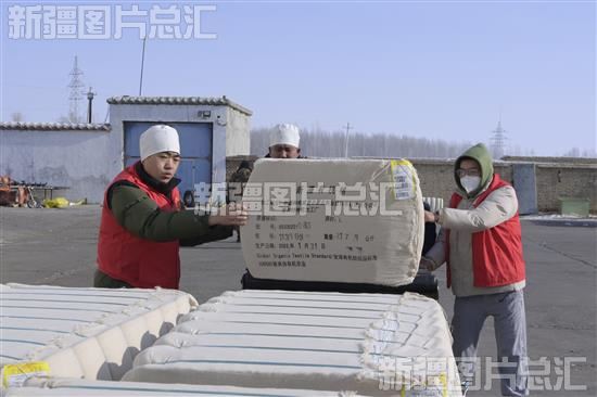 2023年1月31日,华丰棉花加工厂工人在装运皮棉。