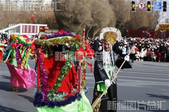 当日,哈密市伊州区各社火表演队走上街头,为市民献上了花车巡游、扭秧歌、踩高跷等精彩民俗表演。