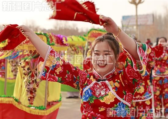当日,新疆生产建设兵团第一师10团举办社火展演,花车、舞龙舞狮、变脸等传统节目让现场观众连连叫好。