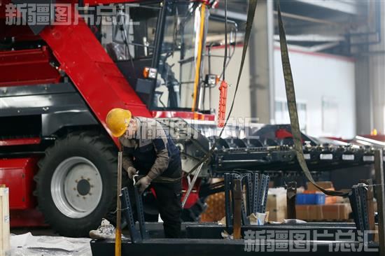 2月6日,在位于乌鲁木齐经济技术开发区(头屯河区)的新疆新研牧神科技有限公司,工作人员正在生产车间忙着组装农用机械。该公司生产的自走式玉米收获机、青饲料收获机、特色农产品加工机械、林果机械及经济作物收获机械等七大系列40余款产品,销往全国各地。今年计划生产3000余台,目前已接到近2000台的生产订单。