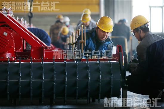 2月6日,在位于乌鲁木齐经济技术开发区(头屯河区)的新疆新研牧神科技有限公司,工作人员正在生产车间忙着组装农用机械。该公司生产的自走式玉米收获机、青饲料收获机、特色农产品加工机械、林果机械及经济作物收获机械等七大系列40余款产品,销往全国各地。今年计划生产3000余台,目前已接到近2000台的生产订单。