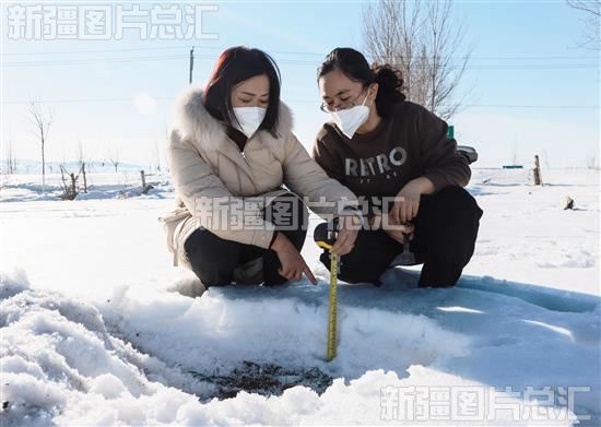 2023年2月2日,新源县农业农村局技术人员拨开积雪,查看小麦生长情况。