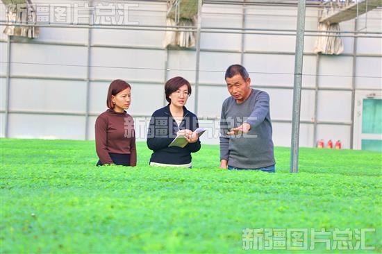 2023年2月3日,库车市比西巴格乡其乃巴格村的党员干部(中)了解村里育苗情况,帮助化解难题。